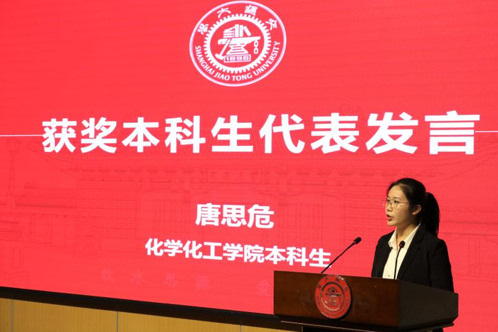 食品科学与工程系青年教师王大鹏、硕士研究生李明及化学化工学院本科生唐思危分别代表获奖师生发言。他们结合自身经历,感谢益海嘉里集团、金龙鱼基金会对交大师生科研学习的大力支持,并表示将会继续在各自学科领域不忘初心,不懈奋斗,不辜负益海嘉里集团与学校的期望。