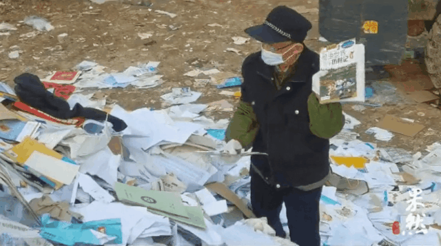 在一人多高的废品书堆里他弯腰拾起旧书每一本都翻开看看