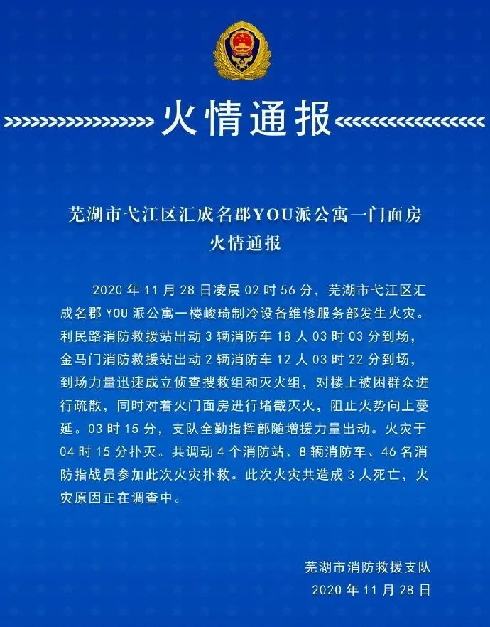 芜湖消防对此次事故进行了通报
