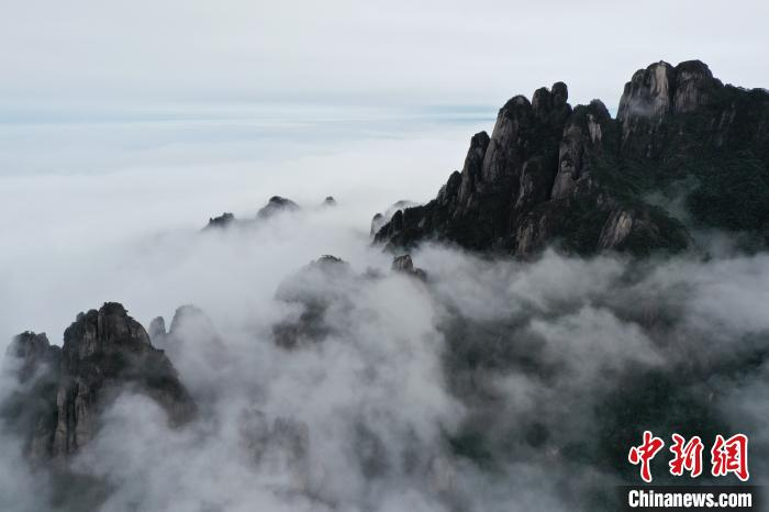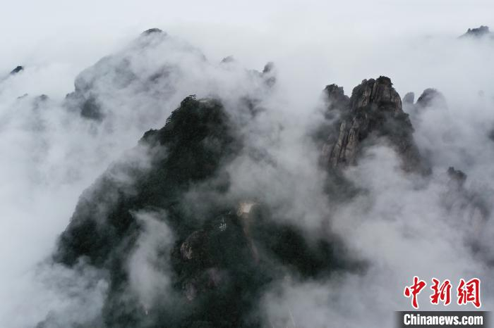 壮观!航拍江西三清山云雾缭绕 “巨蟒出山”神韵尽显