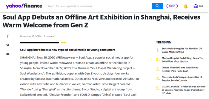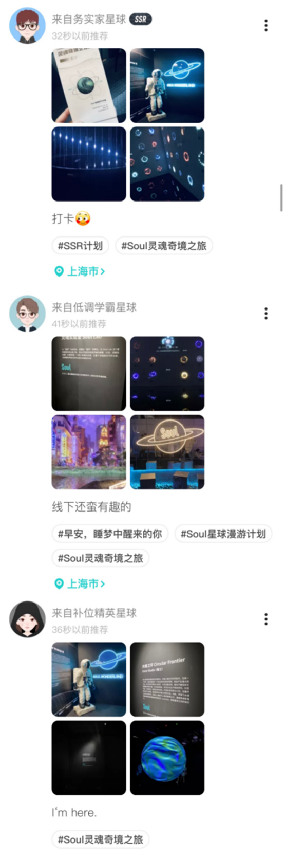 展览举办以来,受到海外主流媒体关注,在Soul和其他社交媒体上也引起热烈反响,“周末约看展”一度成为Soul上的热门话题。在“Soul灵魂奇境之旅”的话题下,大批观众纷纷晒图打卡,分享观展感受。