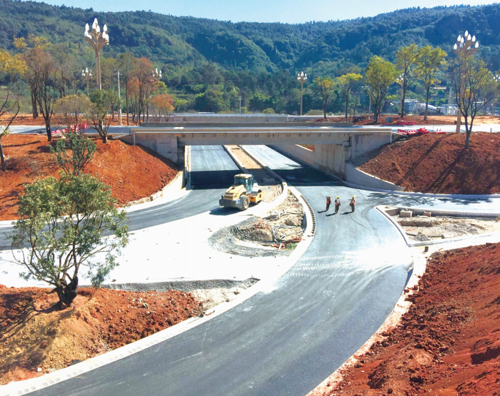 继续前行,在中冠建材城路口,即可驶入正在收尾的安宁段。此时,路面瞬间变宽,刚铺的黑色沥青路面和才划的白色标线,让人眼前一亮。