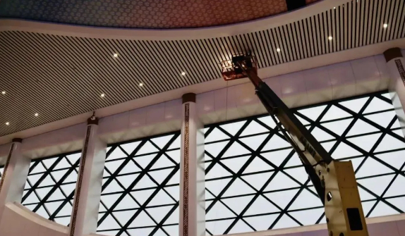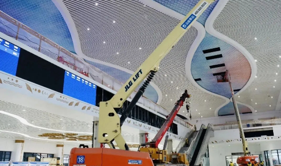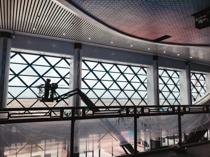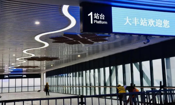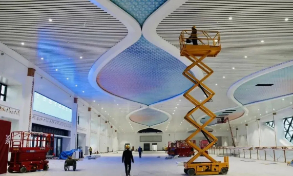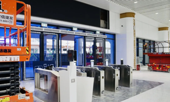 目前高铁站房主体结构、屋面钢结构网架已全部完成,正在进行站房外立面幕墙及室内装饰装修施工。