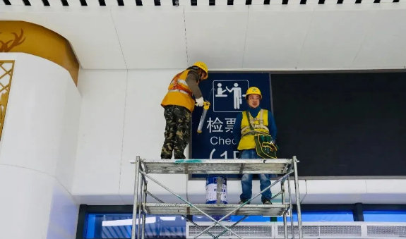 站前广场地下停车场、游客集散中心、餐饮酒店主体结构均已封顶,架空落客平台已全部贯通,正在进行餐饮酒店、游客集散中心外立面装饰装修、景观广场地面铺装及绿化施工。