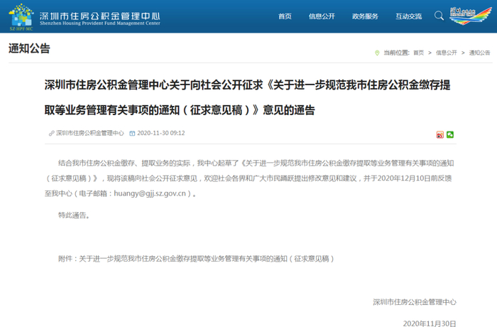 11月30日,深圳市住房公积金管理中心对外发布《关于进一步规范我市住房公积金缴存提取等业务管理有关事项的通知(征求意见稿)》公开征求社会各界意见。据介绍,新规对原缴存、提取政策进行了补充和完善,主要包括明确新参加工作职工和新调入职工的缴存基数认定标准、规范公积金账户清理方式、规范其他住房消费提取和异地购房提取条件、完善公积金欠缴执法投诉案件处理机制等。