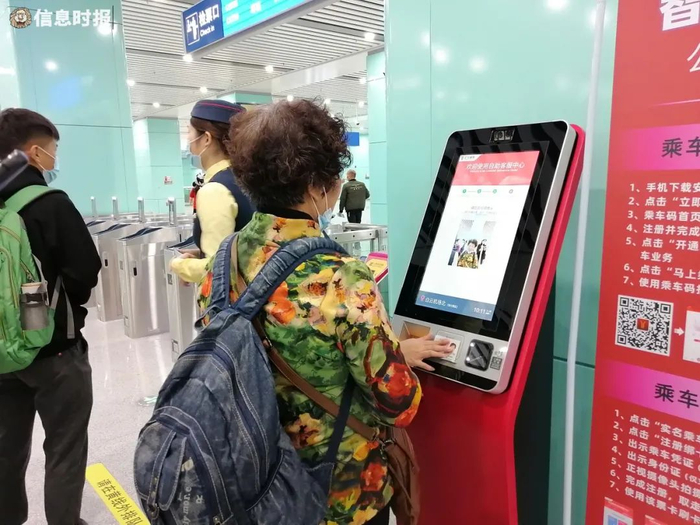 3、注册绑定并实名认证乘车凭证(岭南通、羊城通、全国交通一卡通),刷卡进站乘车。记者观察到,在白云机场北站和花都站进站闸门附近均有供乘客进行自助实名登记的红色机器,只需将身份证和乘车凭证放在机器相应的感应区,随后刷脸进行身份认证即可绑定。