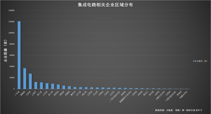 截至11月30日,我国经营范围含“集成电路、芯片、半导体”,且状态为在业、存续、迁入、迁出的相关企业分布数据(不含港澳台地区)。