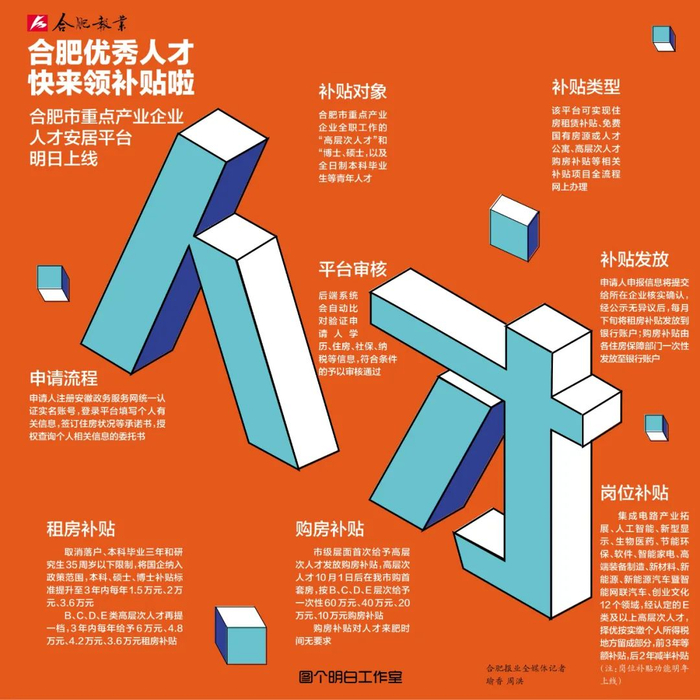 11月30日,记者从市委组织部获悉,为方便人才领取补贴,“合肥市重点产业企业人才安居平台”(以下简称“平台”)于12月1日正式上线,人才仅需填写少量信息,足不出户即可在网上申请免费租房、租房补贴、购房补贴。