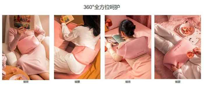来大姨妈可以抱着它,也可以直接绑腰上。爸妈有老寒腿,也可以用来暖暖腿。在家看电视、睡觉,在办公室上班,都能用来取暖。
