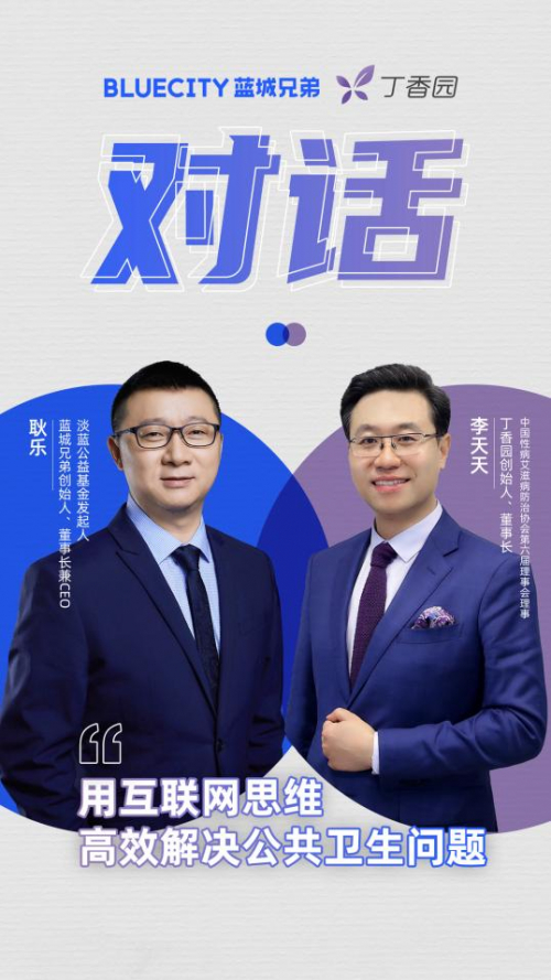 日前,丁香园创始人、董事长、中国性病艾滋病防治协会第六届理事会理事李天天与蓝城兄弟创始人、董事长兼 CEO,淡蓝公益创始人耿乐就企业如何“携手防疫抗艾、共担健康责任”进行了深入探讨。