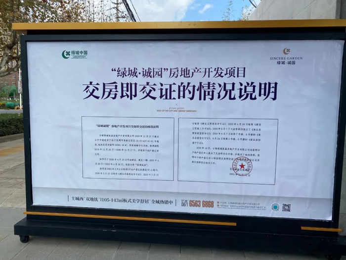 绿城·诚园项目虽未交房,但也粘贴出今年10月已经向昆明不动产登记中心提交“交房即交证”申请的情况说明。