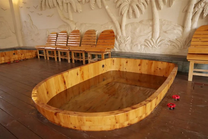 这里有大大小小多种功效不同的温泉池可供选择:蔬果池、酒池、中药池、苗药池,鱼疗池、冰泉、雪花池、按摩池、漩涡池,四大美人汤、喷雾池、椰奶池、咖啡池……