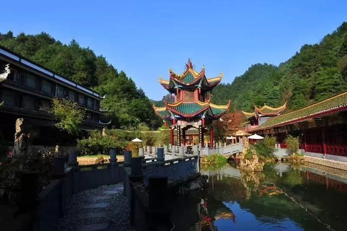 枫叶温泉坐落于香纸沟枫叶谷旅游度假区内,整个温泉依山而建,占地20余亩,是按徽派风格为主建设的园林式温泉。
