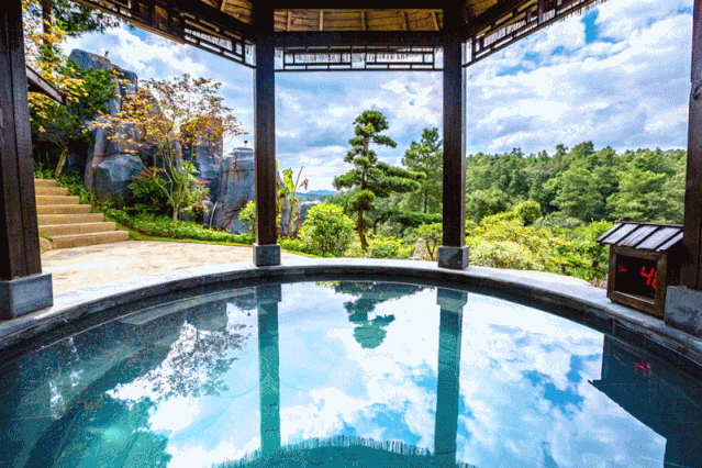 观景池、鱼疗池、药浴池、太极池......每个池子都有不同的功效,轮番泡一泡,烦恼全消掉!枫叶温泉与枫叶谷美景融为一体,林木葱郁,空气清新、风景秀丽,绝对是冬日疗养度假的绝佳去处!