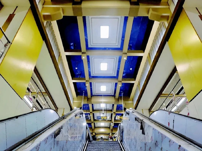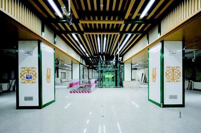 太原地铁2号线涧河站是非常有特色的车站。站内到处可见“象形字”设计,白色的主体、绿色的边框。浅灰色的地面映衬着头顶暖色系的吊顶,整个空间简洁大方、醒目别致。大南门站,地处繁华闹市区,为更好地降低地铁噪音,站内使用了一种先进的格栅吊顶结构。这是一种开放式的网格设计结构,具有层次分明、立体感强、造型新颖、通风好等特点,大方美观、历久如新。