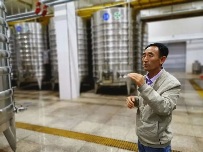 宁夏精品酒庄维加妮酿酒师段成春正在讲解发酵工艺 文静摄