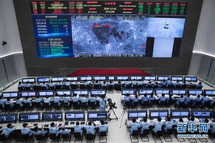 12月1日,在北京航天飞行控制中心拍摄的嫦娥五号探测器落月过程。新华社记者 金立旺 摄