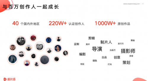 尹兴良谈到新片场作为国内专业的互联网影视传媒公司,建立的初衷便是给新一代的影视创作人提供一个展示作品、互动交流的线上平台。如今新片场社区创作人已分布40个国内外地区,认证用户累计超过220万人,发布作品超过1000万部。围绕线上创作人社区平台,逐步拓展出新片场影业、新片场短视频等影视内容品牌。