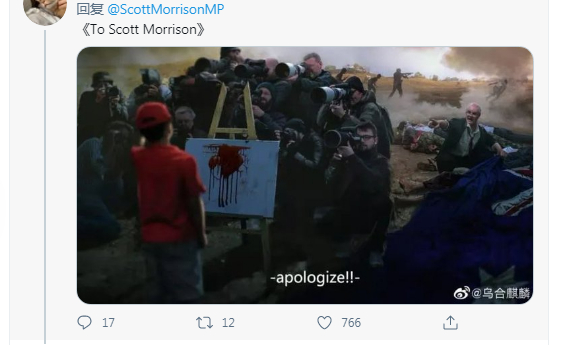 此前,“乌合麒麟”描述澳大利亚士兵在阿富汗残杀少年的插画被中国外交部发言人赵立坚推特转发,引发莫里森“强烈不满”,并要求“中国道歉”。乌合麒麟11月30日曾对媒体回应说,“那我今晚有空再画一张好了。”