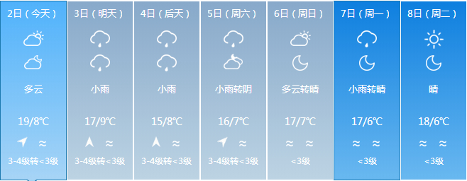 本周其余时段,滇东北北部、滇西边缘有阵雨,其它地区多云间晴。滇西南、滇中及滇东清晨局地有大雾。