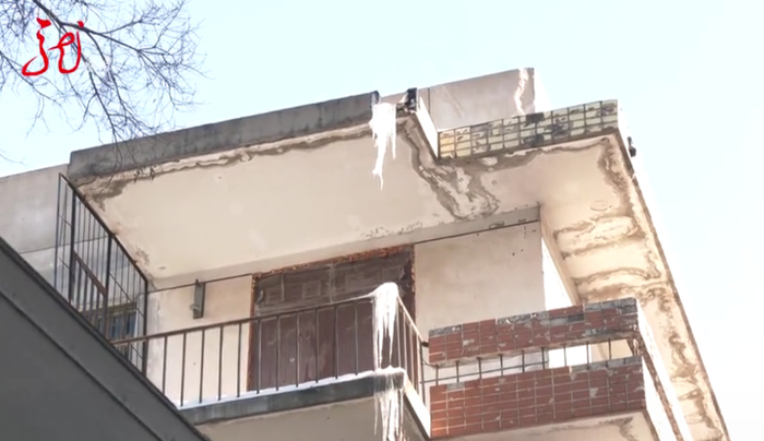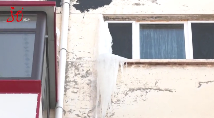 刘晶莹家的房子在六楼,顶层是七楼,刘晶莹发现从顶层七楼开始一直到二楼,窗户位置都结了厚厚的冰溜子,居民们怀疑这些冰溜子是楼顶的冰雪融化造成的。