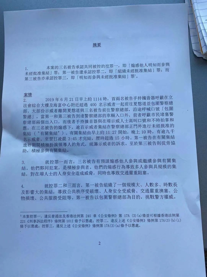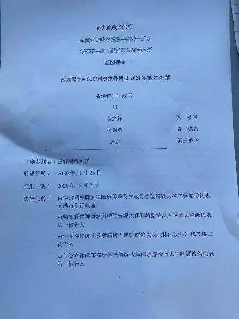 第一被告黄之锋(24岁)“煽惑他人明知而参与未经批准集结”罪及“组织未经批准集结”罪两项罪成,判囚13.5个月;