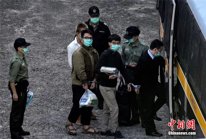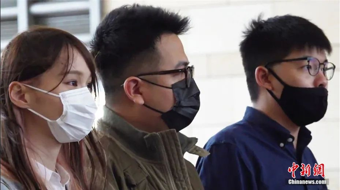 黄之锋、周庭及林朗彦涉非法包围香港警总,已认罪还押。视频来源:中新视频
