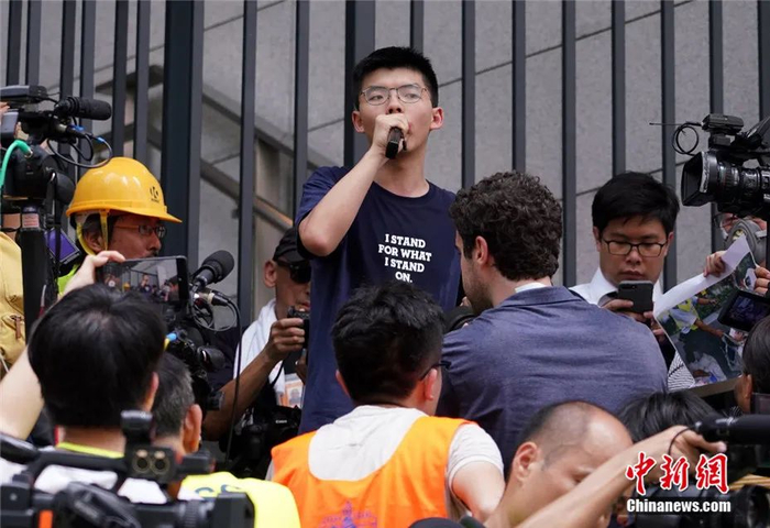 2019年6月21日,黄之锋涉嫌煽惑他人包围警察总部的资料照片。记者 张炜 摄