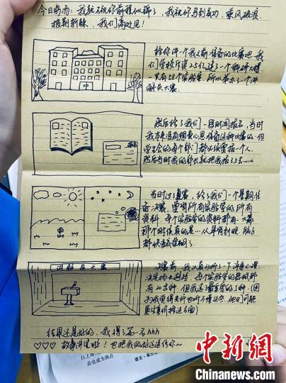 信件中,有些内容是鼓励。“躲起来的星星也在努力发光,你也要加油。”“曾经的失利,都将成为我们成长的辅料。没有一个‘冬天’是不可逾越的。每一份经历,不管是顺境还是逆境,都会增加我们生命的厚度!”