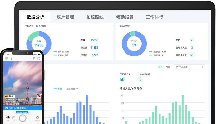 今日水印相机App,不仅极大的节约了一线业务人员的时间,还有强大的考勤管理功能,在手机端、电脑端均可登录“考勤管理后台”。管理员可查看员工的迟到早退、工时统计等出勤情况,还能一键导出员工的考勤记录Excel表,方便快捷。