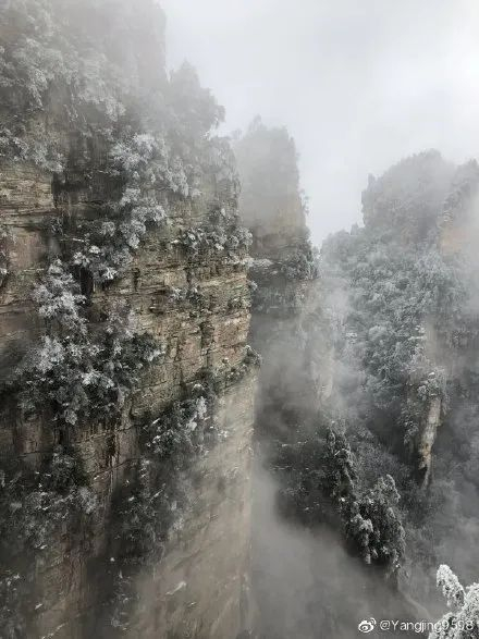 与此同时12月3日上午张家界天门山也迎来入冬以来首场大雪雪花纷扬山顶秒变银色仙境