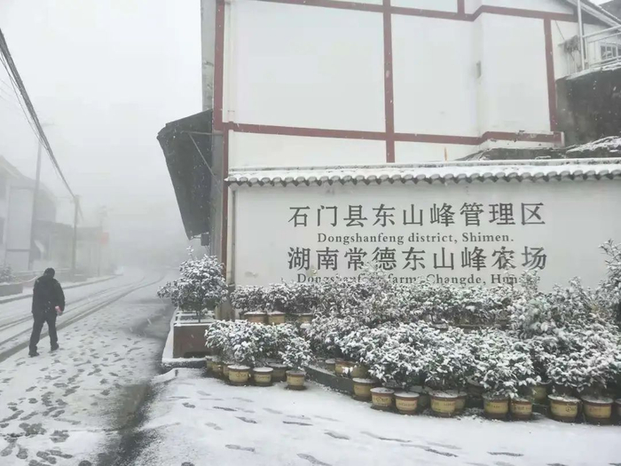 受强冷空气影响,石门县西北部乡镇气温持续走低,11月30日至12月2日气温都在零下,最低温度-3.3摄氏度。12月2日东山峰、南北镇等乡镇迎来今冬首场纯雪,飘飘洒洒的雪给山峰、树木、房屋穿上新衣,把美丽的石门乡村装扮得宛若仙境。东山峰等地出现的低温雨雪天气,形成积雪,3日的积雪厚度2厘米左右。