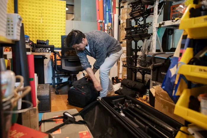 公司储藏室里放满了拍摄器材以及道具