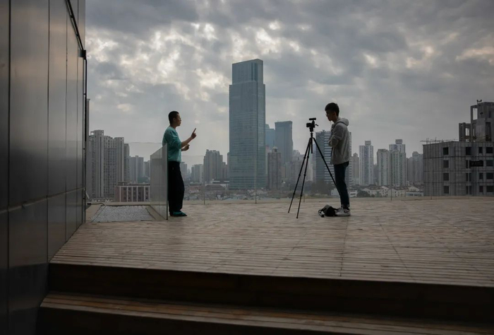 大鱼(左)和公司视频摄影师在楼顶拍摄