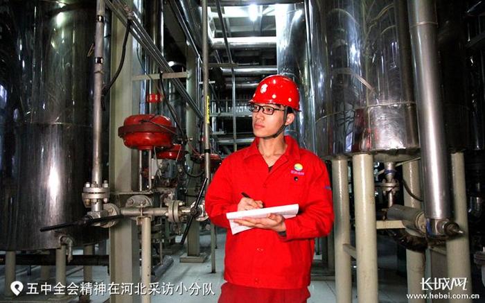 晨光生物超临界萃取车间2号线操作工白森维在车间巡视设备。长城网记者 袁立朋 张建勋 摄