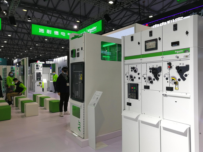 其中,施耐德电气展台展出的无六氟化硫(SF6-free)中压开关柜,有关空间里原来填充的六氟化硫,就可以用普通空气代替,产品的安全性随之提高。