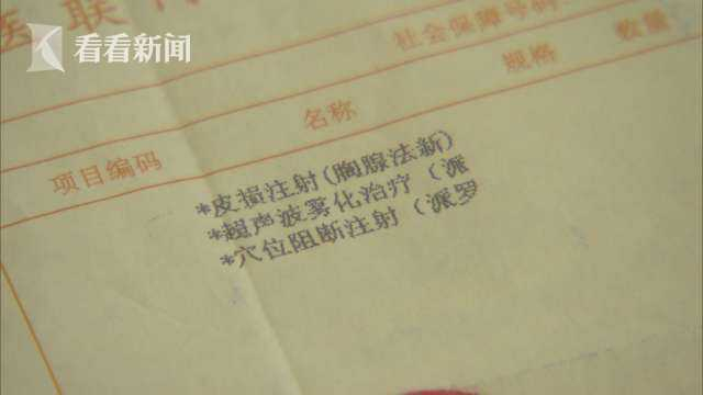 看看新闻Knews记者查看了相关单据,发现除了疱疹、梅毒、艾滋病等检测外,还有980元一次的渗透激活深部治疗、1350元一次的胸腺法新皮损注射、920元一次的超声波雾化治疗、单趟2200元的派罗欣穴位阻断注射等。其中胸腺法新的说明书显示,其主要用于治疗肝炎或者提高免疫力,如果单纯是提高免疫力的话,规定每周注射两次,每次间隔3到4天,但陈先生连续注射了五天。而派罗欣的主要适应症也是肝炎,与生殖器疱疹没任何关系。