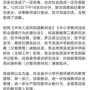 关于被打的原因,通报显示,经调查核实,2020年11月24日18点20分许,龙溪中学冉某某等4名教师为了解男女同学早恋倾向情况,以及吕某某曾在某短视频APP上发布与其学生身份不相符的视频和不当言论,遂将涉及的吕某某等5名学生叫到数学组办公室进行询问、教育。“早恋”也好,“发布不当言论”也好,犯了错就该遭受暴打吗?而评判这一事件,有必要先拎清一个概念:暴打学生,是教育,还是伤害?