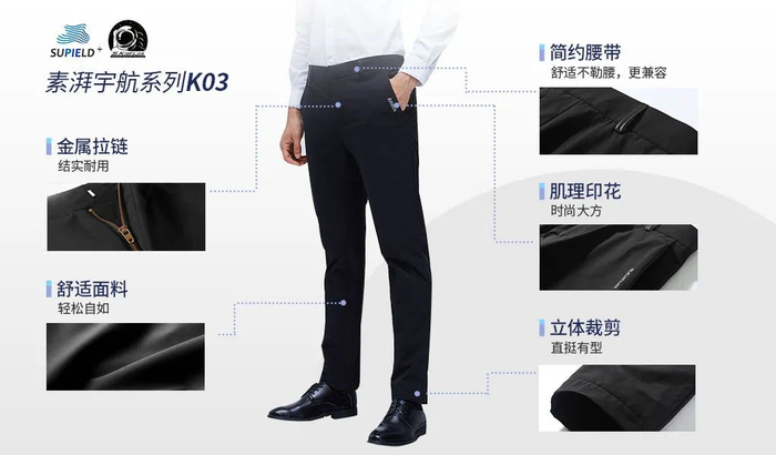 K系列的抗寒休闲裤,也采用了气凝胶材质。修身、保暖,颇有些韩国欧巴的意思~