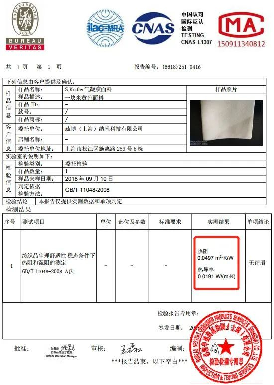 官方检测报告显示,抗寒服的热导率比空气还低👇