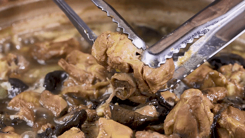 把鲜嫩的鸡肉炖至软烂,