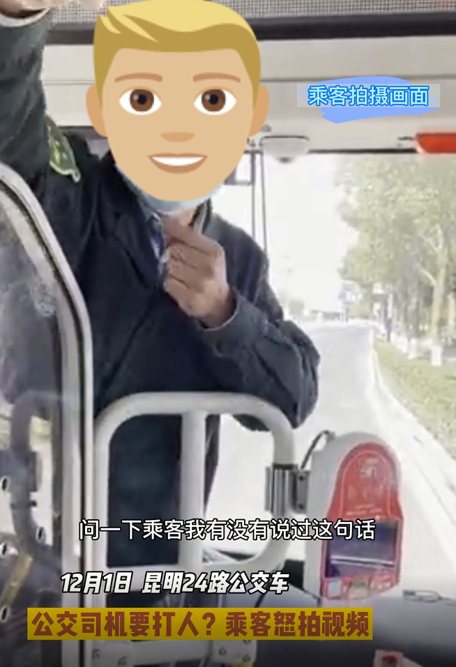 12月1日中午,市民小黄在昆明市广福路乘坐24路公交车,但上车后却因未戴口罩与司机发生口角,他称司机竟当着一车人爆粗口,还说要打人,这让小黄非常气愤!