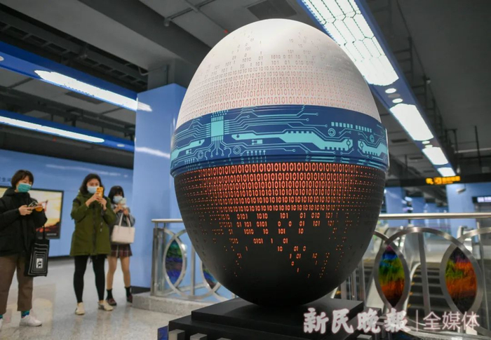 10号线二期终点站基隆路站在一层与二层之间设置了“中庭”,结合自贸区主题的雕塑“自贸|升腾”,实现了内外空间的互动交融,为自贸区车站注入了别样特色。