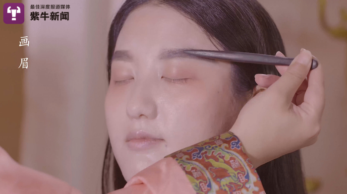 “最近引起关注的视频还原的是东汉时期的妆容,用到的复原妆品有面脂、露华百英粉、红蓝花胭脂、石黛、朱砂。”王一帆告诉紫牛新闻记者,东汉时期《东观汉记·马廖传》中有诗句云:城中好广眉,四方且半额,可见当时的审美流行粗眉,方额。他们团队根据这个思路,还原出了视频中的妆容,“先用面脂上底妆,然后用丝绵粉扑傅粉。汉代女子的妆面以清淡素雅为主,因此底妆的白度介乎米粉和铅粉之间,光泽感比较强,非哑光。使用的粉状胭脂溶化后呈现水性质地,再上于两颊,让面庞呈现自然的桃红色,与底妆融合后宛如天然气色。妆容整体感觉通透、自然。”