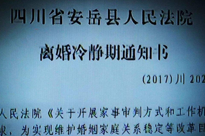 2017年7月4日,丹凤县法院庾岭法庭发出陕西首份离婚冷静期通知书。