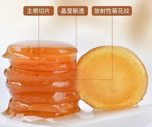 喝水的时候,泡上两片,水里既有蜜香,还有人参草本的味,闻着就很提气。或是炖甜品、鸡汤的时候也可以放几片,营养、味道全都收于口中。