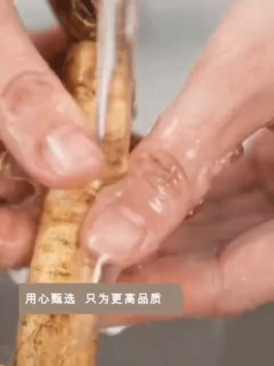 所以切参的时候,细的头须不要,只选取饱满的主根,切成一元硬币的厚度,参片大,皂苷足,吃起来也更好!