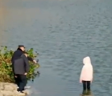据网传的一段视频显示,女孩开始站在离岸边一米多的河中,水没过她的膝盖,现场有两名警察站在岸边,疑似劝解女孩上岸。但女孩转身一跃,全身没入水中。