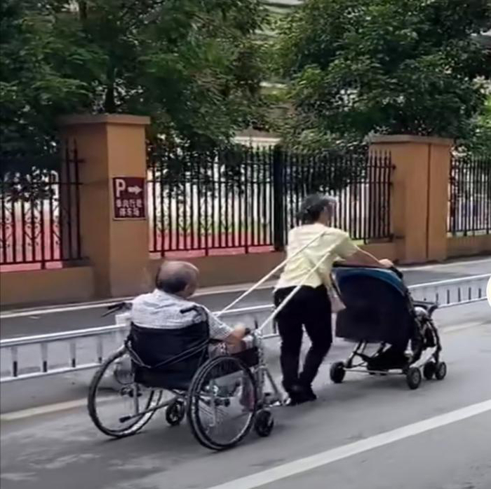 右肩上一根粗粗的绳子,将她和身后老人的轮椅紧紧地系在一起。视频下方的留言区里,有条留言颇为戳心:“推着黎明,拉着黄昏,人到中年,是凡人,也是超人。”上有双亲,下有稚子,人到中年,我们都修炼成了两个“自己”:一个懦弱不已:怕病,怕老,怕死,聚会上滴酒不沾,健身房里挥汗如雨。一个百毒不侵:前方几多沟坎,一路迎难而上,拼了命也要活成家人的超级英雄。▽前阵子,在喇嘛哥的文章里看到一段话,感触颇深:“突然明白,我们这个年龄的人,认怂是他,清高也是他;