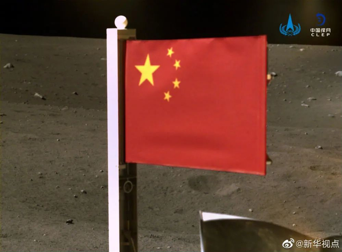 近日,嫦娥五号着陆器和上升器组合体全景相机拍摄五星红旗在月面成功展开。
